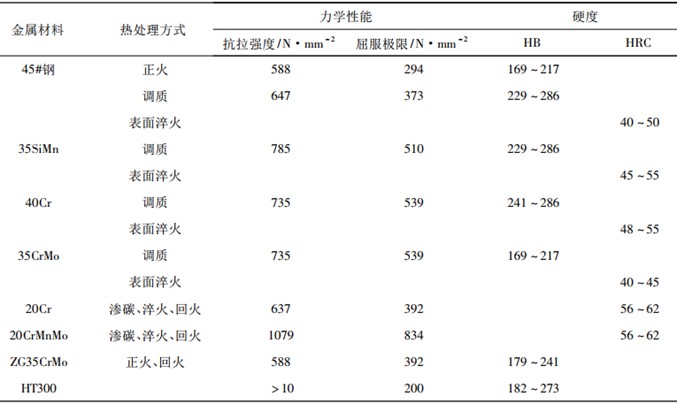 表1 齒輪生產(chǎn)常用材料適用場合及相關(guān)處理方式